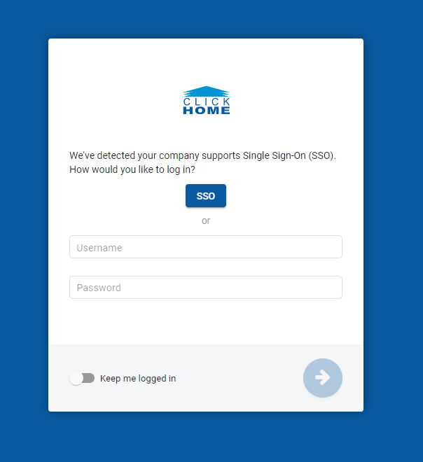 On the ClickHome Login screen you have an option to Login using SSO credentials or Login using ClickHome credentials:
