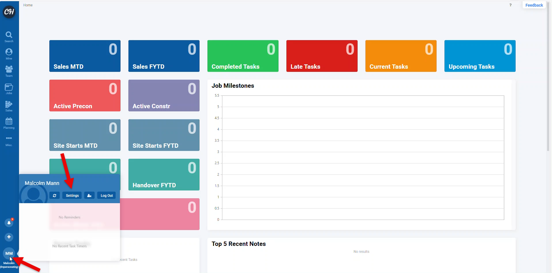 - Find your username on the bottom left hand of the menu. This menu can be accessed from any screen within ClickHome